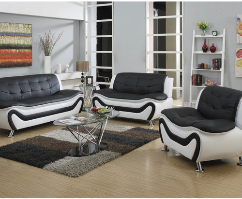 3Pc Black & White Leather Livingroom Set